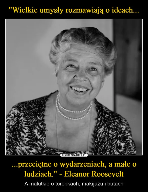 "Wielkie umysły rozmawiają o ideach... ...przeciętne o wydarzeniach, a małe o ludziach." - Eleanor Roosevelt