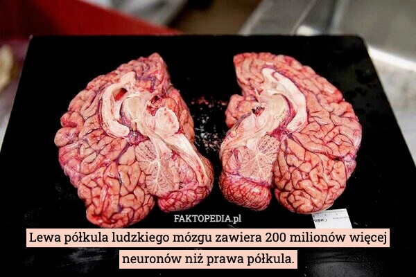 Lewa półkula ludzkiego mózgu zawiera 200 milionów więcej neuronów niż prawa