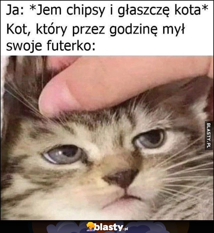 Ja: jem chipsy i głaszczę kota vs kot który przez godzinę mył swoje futerko niezadowolony