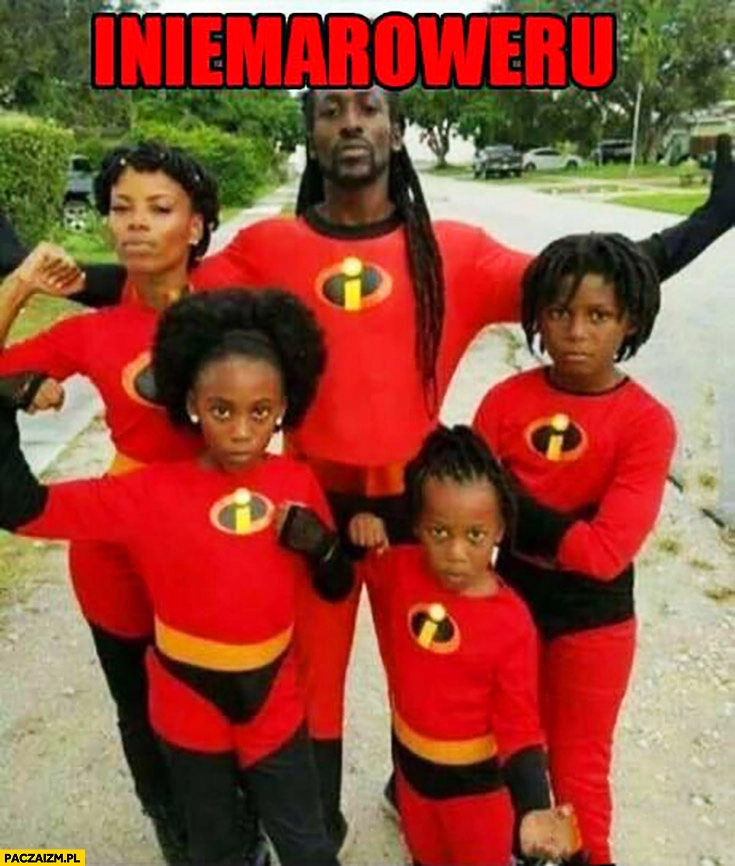 Iniemaroweru. Czarna rodzina super bohaterowie w przebraniu i nie ma roweru