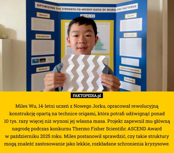 Miles Wu, 14-letni uczeń z Nowego Jorku, opracował rewolucyjną konstrukcję