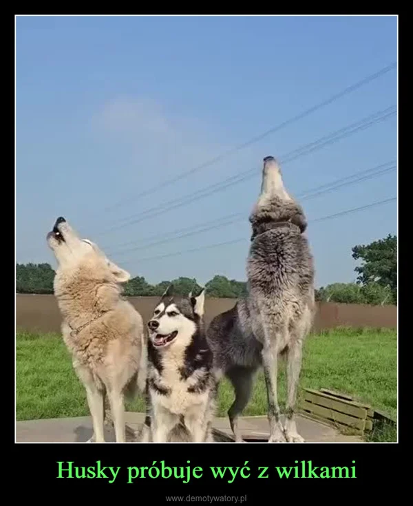 Husky próbuje wyć z wilkami