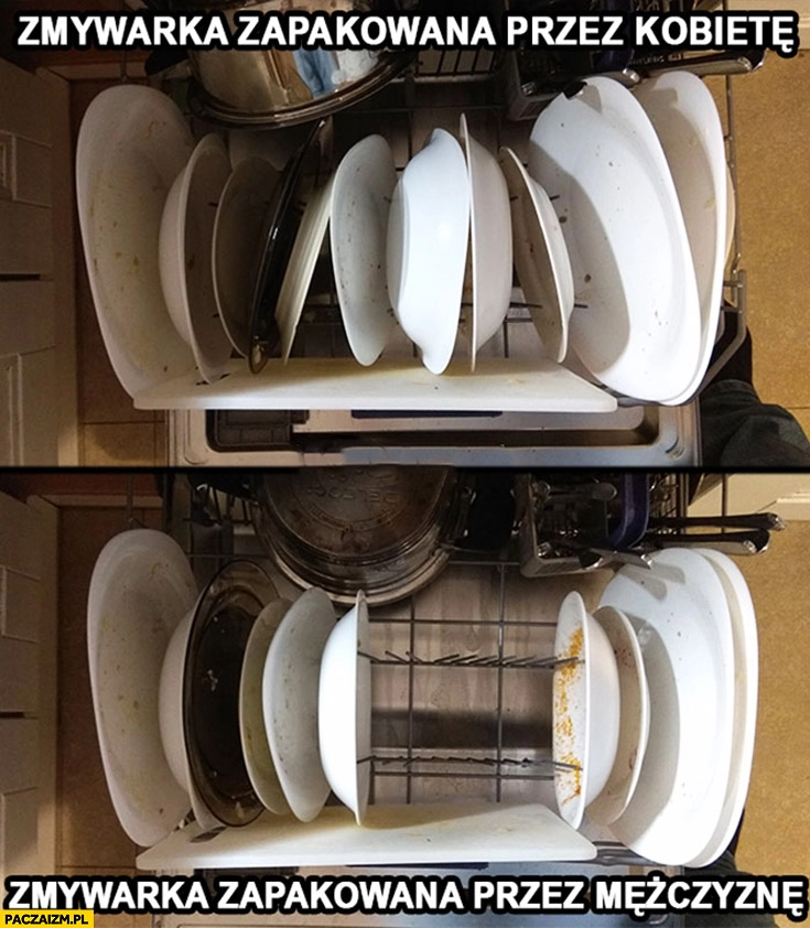 Zmywarka zapakowana przez kobietę vs zmywarka zapakowana przez mężczyznę porównanie