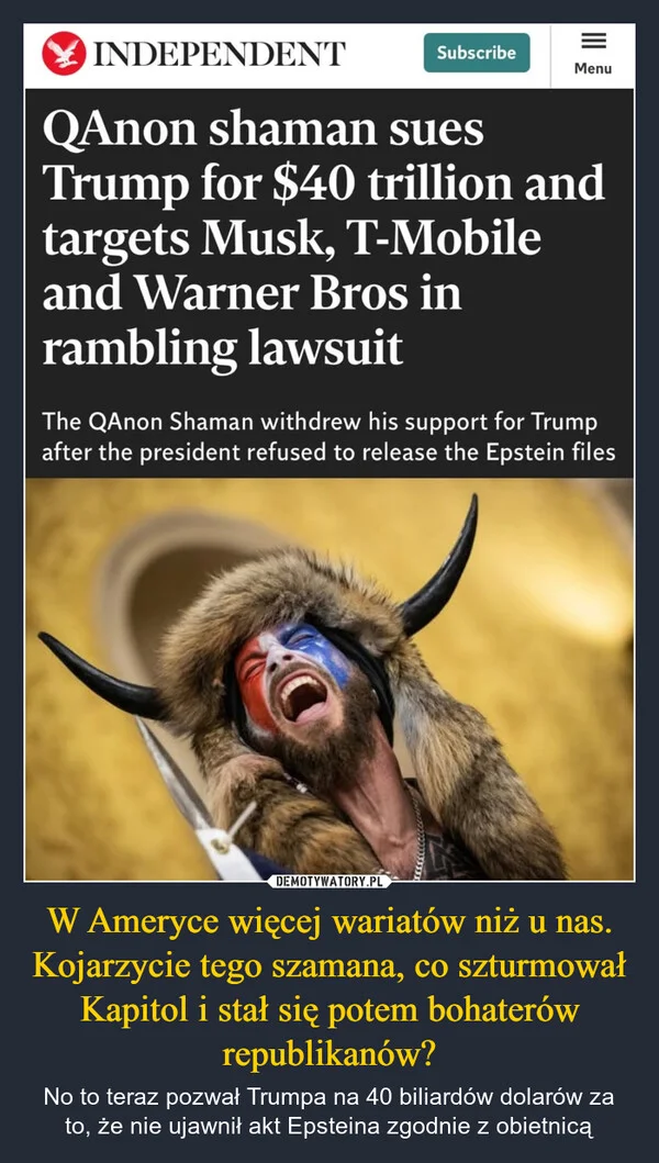 W Ameryce więcej wariatów niż u nas. Kojarzycie tego szamana, co szturmował Kapitol i stał się potem bohaterów republikanów?