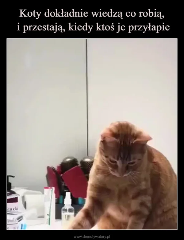 Koty dokładnie wiedzą co robią, i przestają, kiedy ktoś je przyłapie