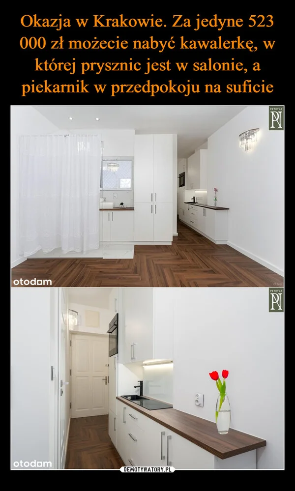 Okazja w Krakowie. Za jedyne 523 000 zł możecie nabyć kawalerkę, w której prysznic jest w salonie, a piekarnik w przedpokoju na suficie