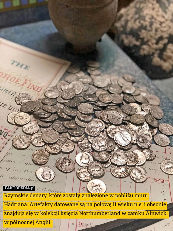 Rzymskie denary, które zostały znalezione w pobliżu muru Hadriana. Artefakty