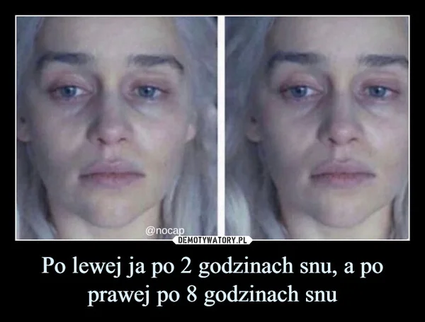 Po lewej ja po 2 godzinach snu, a po prawej po 8 godzinach snu