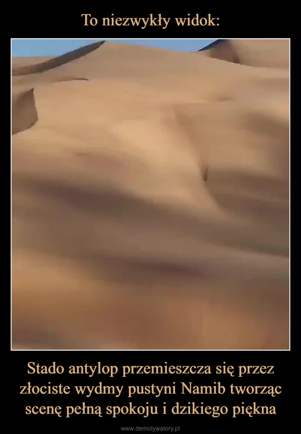 To niezwykły widok: Stado antylop przemieszcza się przez złociste wydmy pustyni Namib tworząc scenę pełną spokoju i dzikiego piękna