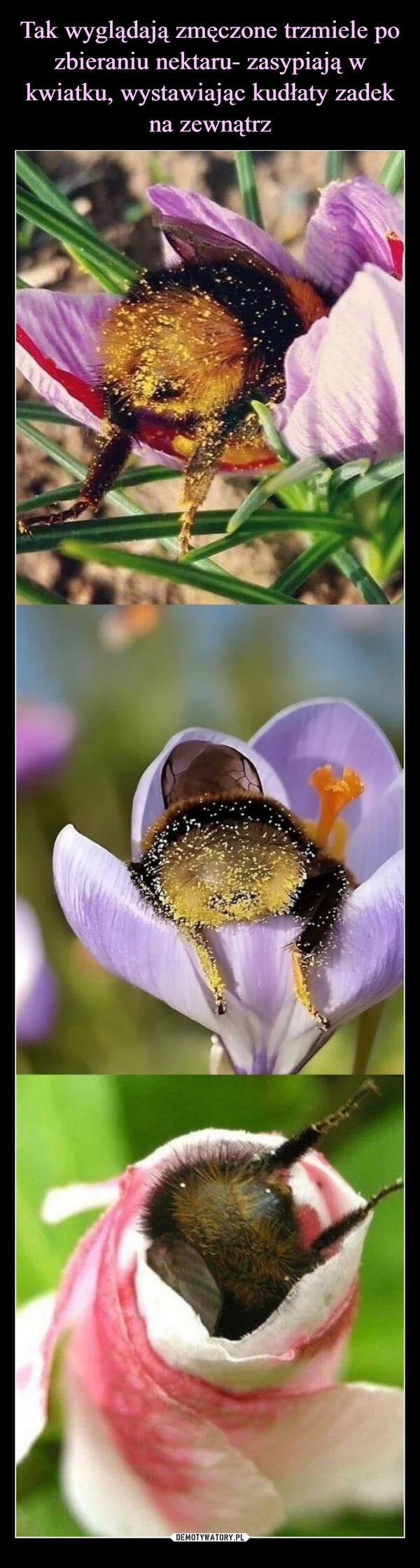 Tak wyglądają zmęczone trzmiele po zbieraniu nektaru- zasypiają w kwiatku, wystawiając kudłaty zadek na zewnątrz