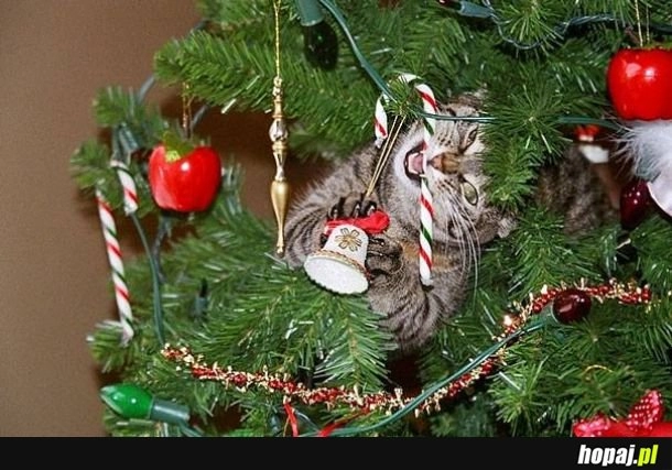 Koty pomagające dekorować dom na święta.