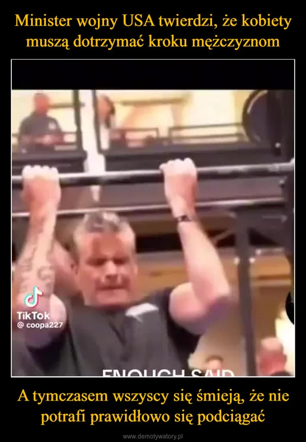 Minister wojny USA twierdzi, że kobiety muszą dotrzymać kroku mężczyznom A tymczasem wszyscy się śmieją, że nie potrafi prawidłowo się podciągać