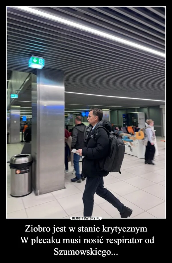 Ziobro jest w stanie krytycznym W plecaku musi nosić respirator od Szumowskiego...