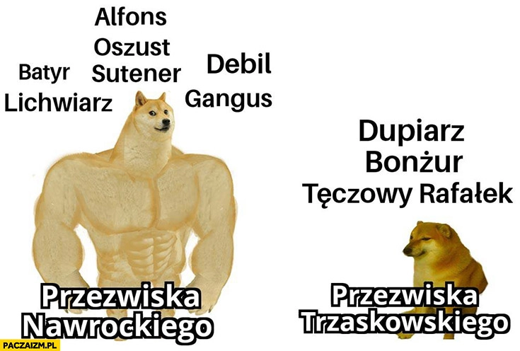 Przezwiska Nawrockiego vs przezwiska Trzaskowskiego porównanie pies pieseł doge cheems