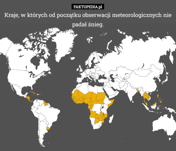 Kraje, w których od początku obserwacji meteorologicznych nie padał śnieg.