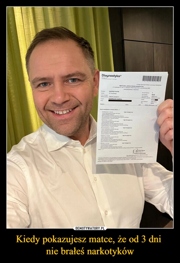 Kiedy pokazujesz matce, że od 3 dni nie brałeś narkotyków
