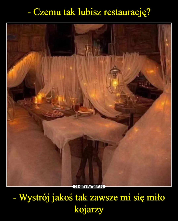 - Czemu tak lubisz restaurację? - Wystrój jakoś tak zawsze mi się miło kojarzy