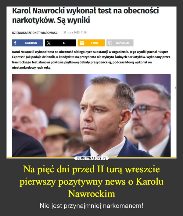 Na pięć dni przed II turą wreszcie pierwszy pozytywny news o Karolu Nawrockim