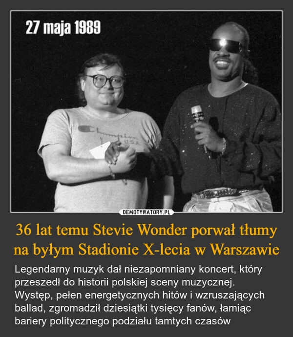 36 lat temu Stevie Wonder porwał tłumy na byłym Stadionie X-lecia w Warszawie