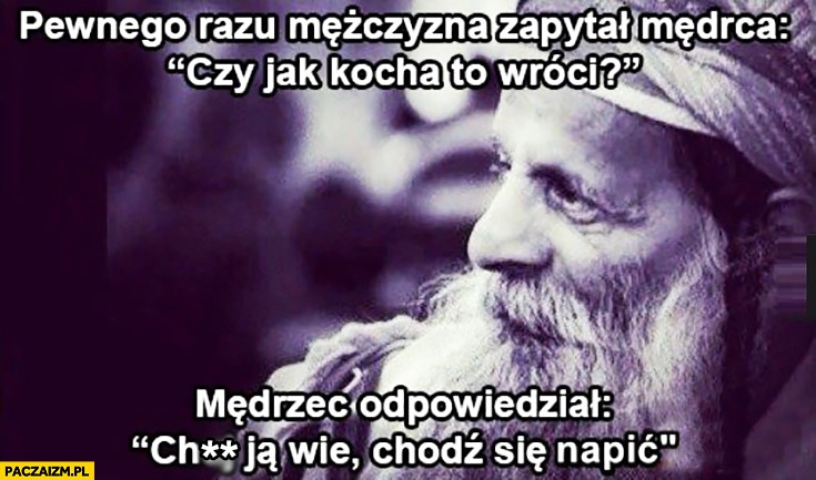 Mężczyzna zapytał mędrca czy jak kocha to wróci mędrzec odpowiedział: kij ją wie, chodź się napić