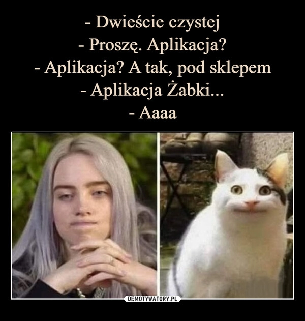 - Dwieście czystej - Proszę. Aplikacja? - Aplikacja? A tak, pod sklepem - Aplikacja Żabki... - Aaaa