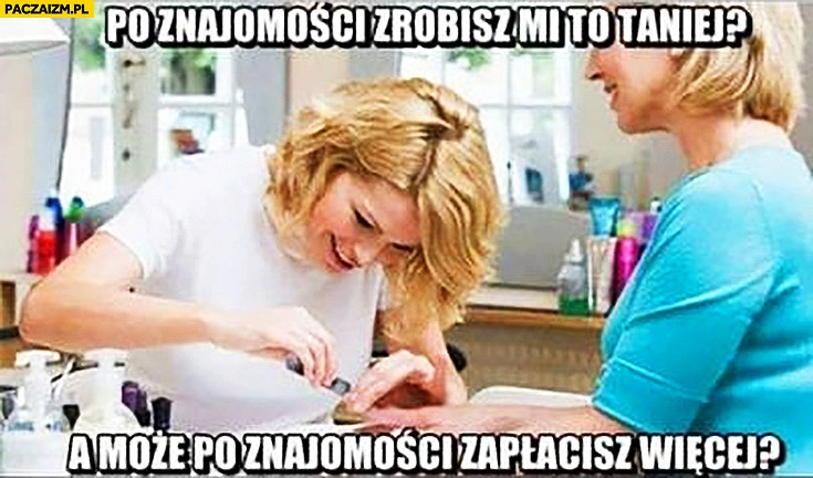 Po znajomości zrobisz mi to taniej a może po znajomości zapłacisz więcej?