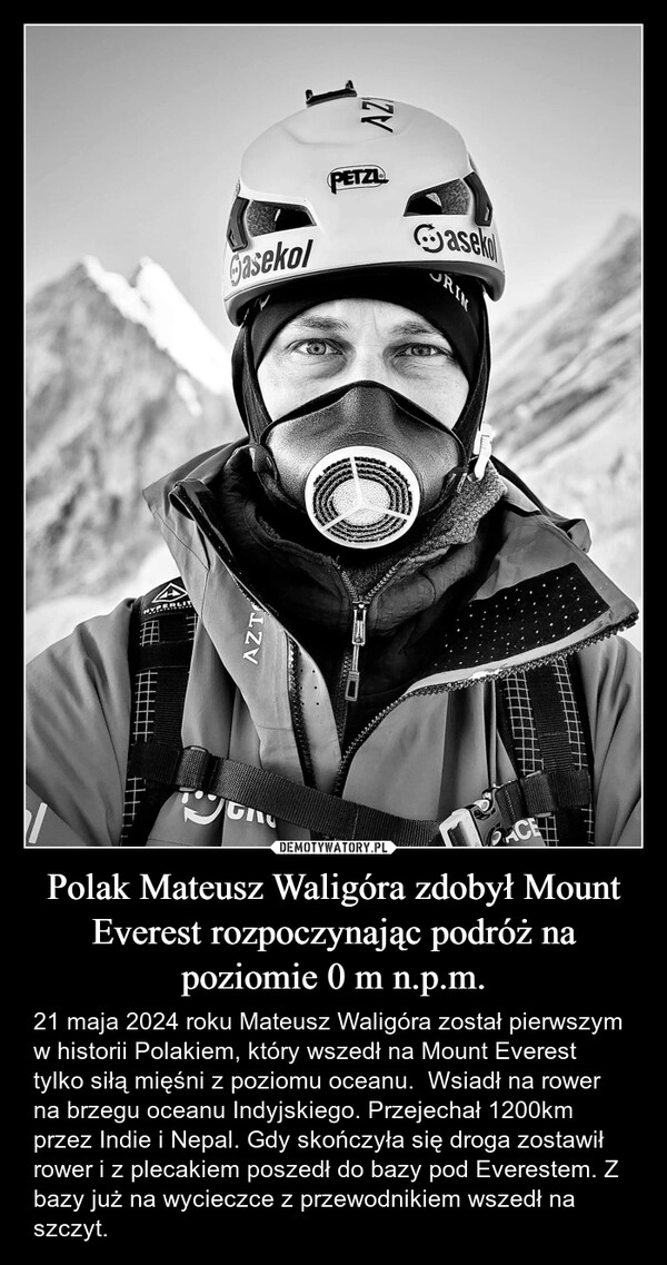 Polak Mateusz Waligóra zdobył Mount Everest rozpoczynając podróż na poziomie 0 m n.p.m.
