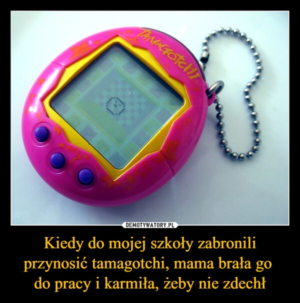 Kiedy do mojej szkoły zabronili przynosić tamagotchi, mama brała go do pracy i karmiła, żeby nie zdechł