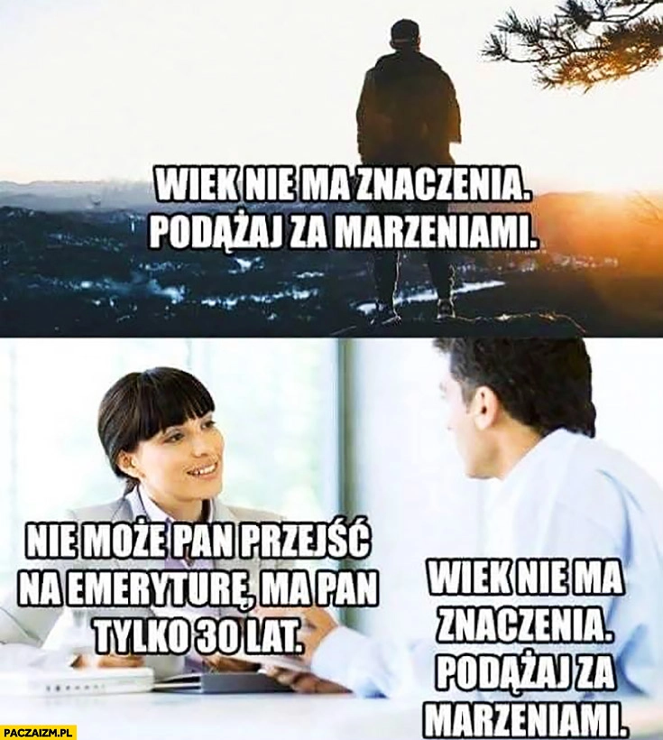 Nie może Pan przejść na emeryturę, ma Pan tylko 30 lat. Wiek nie ma znaczenia, podążaj za marzeniami