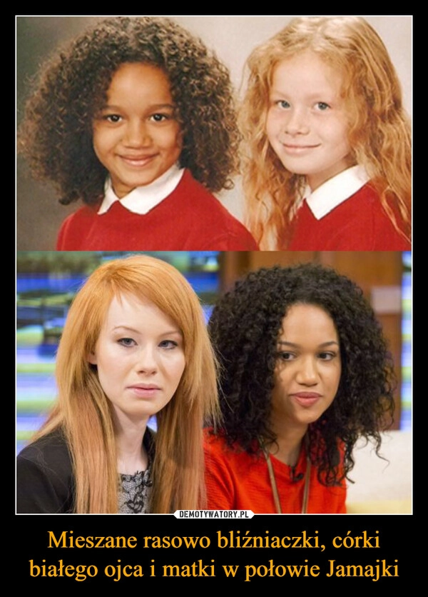 Mieszane rasowo bliźniaczki, córki białego ojca i matki w połowie Jamajki
