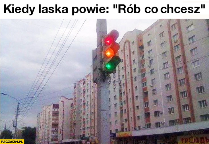 Kiedy laska powie „rób co chcesz”. Sygnalizator świetlny wszystkie światła zapalone