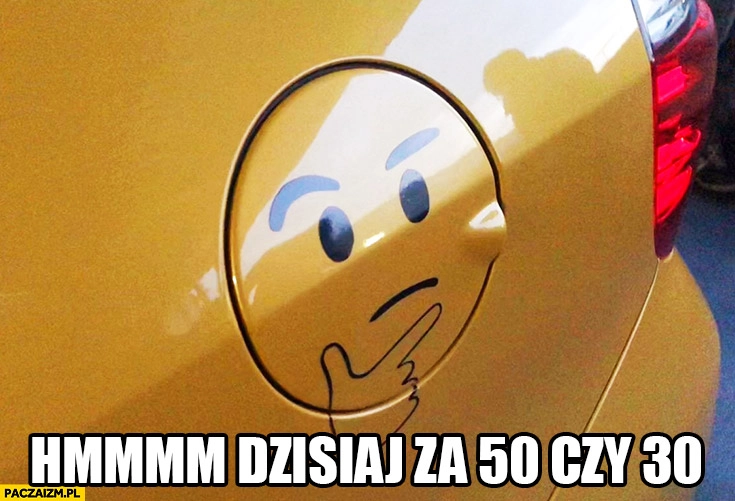 Hmm dzisiaj tankowanie za 50 czy 30 naklejka na wlewie paliwa samochodu auta mem emotikon
