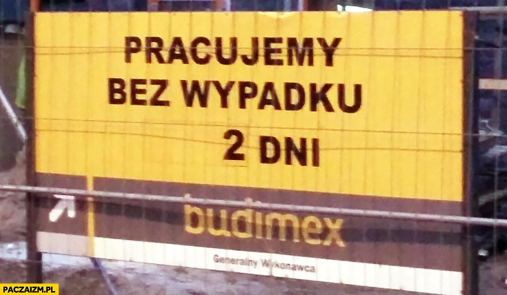 Pracujemy bez wypadku 2 dni tablica na budowie