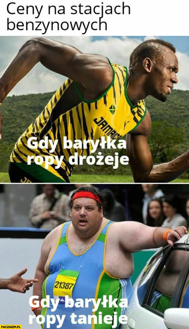 Ceny na stacjach benzynowych gdy baryłka ropy drożeje Usain Bolt vs gdy tanieje gruby grubas