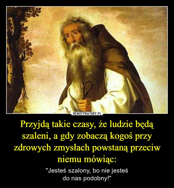 Przyjdą takie czasy, że ludzie będą szaleni, a gdy zobaczą kogoś przy zdrowych zmysłach powstaną przeciw niemu mówiąc:
