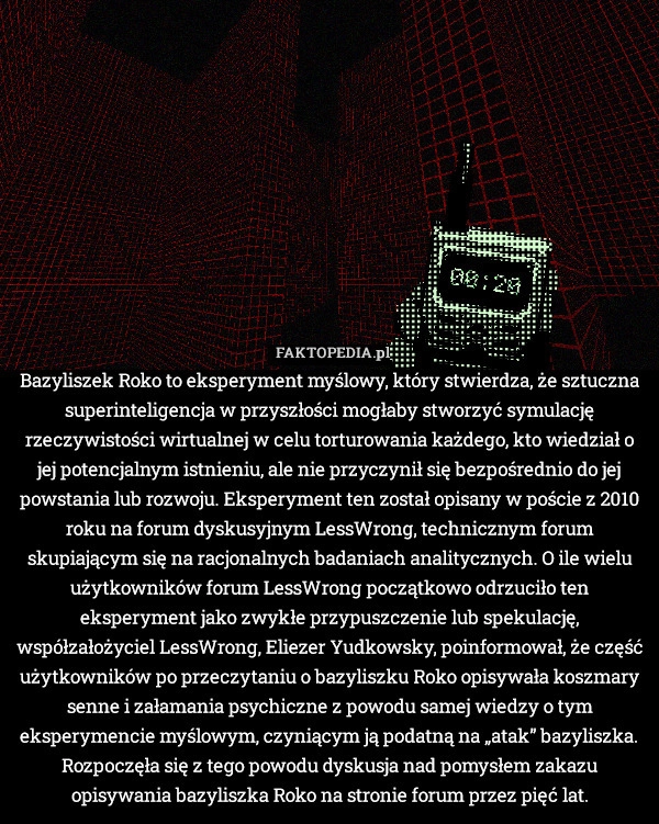 Bazyliszek Roko to eksperyment myślowy, który stwierdza, że sztuczna superinteligencja