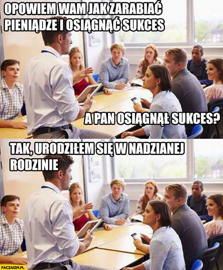 Opowiem wam jak zarabiać pieniądze i osiągnąć sukces. A Pan osiągnął sukces? Tak, urodziłem się w nadzianej rodzinie