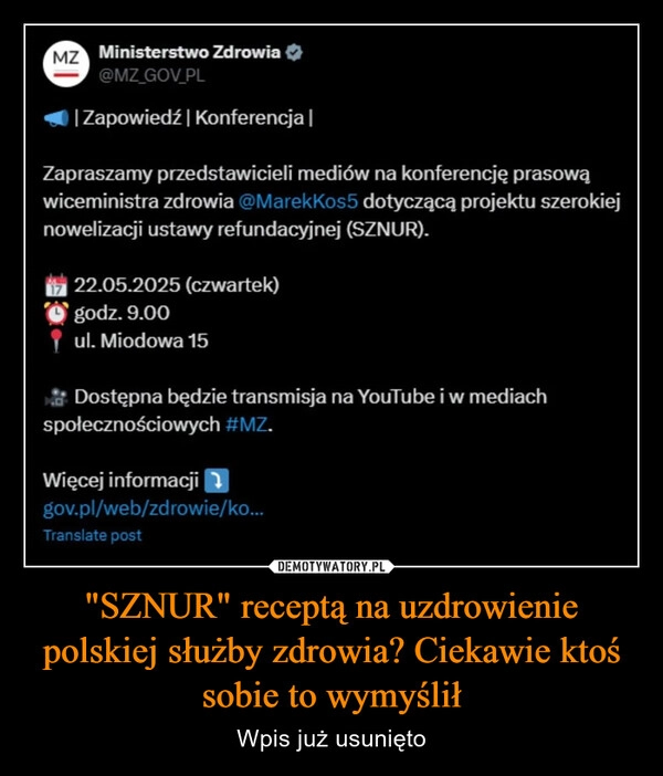 "SZNUR" receptą na uzdrowienie polskiej służby zdrowia? Ciekawie ktoś sobie to wymyślił