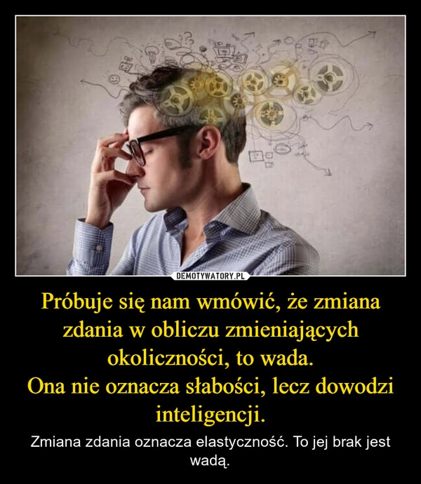 Próbuje się nam wmówić, że zmiana zdania w obliczu zmieniających okoliczności, to wada. Ona nie oznacza słabości, lecz dowodzi inteligencji.