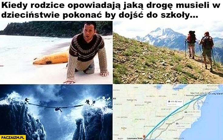 Kiedy rodzice opowiadają jaką drogę musieli w dzieciństwie pokonać by dojść do szkoły