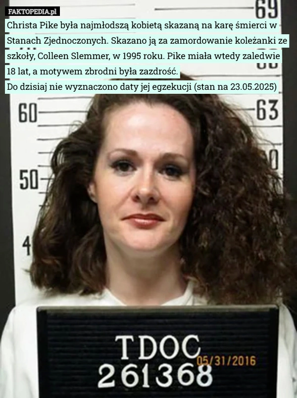 Christa Pike była najmłodszą kobietą skazaną na karę śmierci w Stanach Zjednoczonych...
