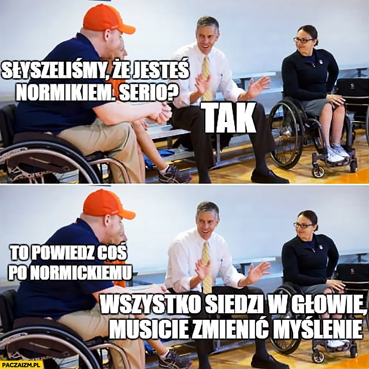 Słyszeliśmy, że jesteś normikiem, serio? Tak. Powiedz coś po normickiemu: wszystko siedzi w głowie, musicie zmienić myślenie niepełnosprawni