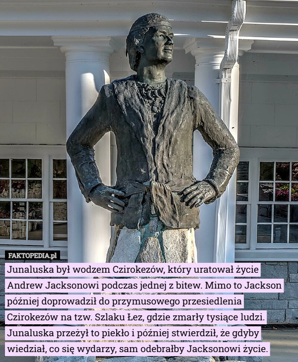 Junaluska był wodzem Czirokezów, który uratował życie Andrew Jacksonowi...