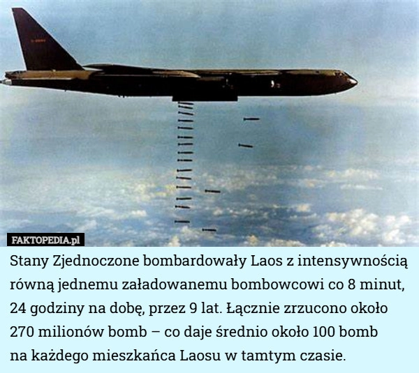 Stany Zjednoczone bombardowały Laos z intensywnością równą jednemu załadowanemu...