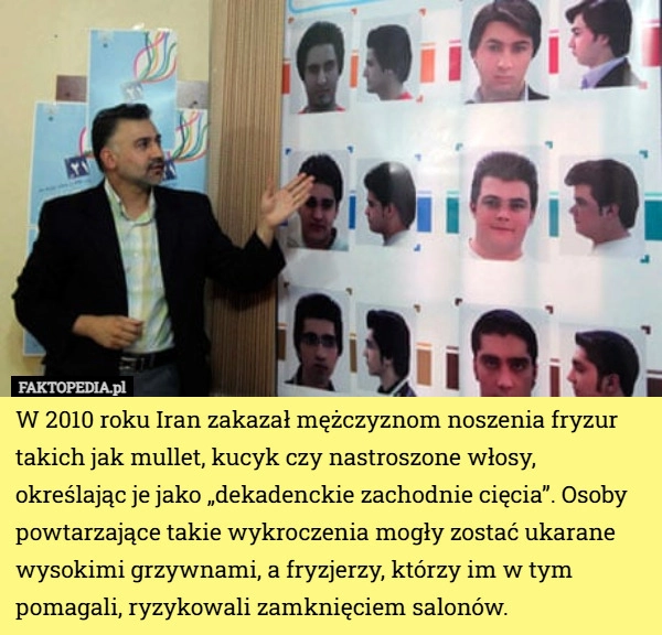 W 2010 roku Iran zakazał mężczyznom noszenia fryzur takich jak mullet, kucyk...