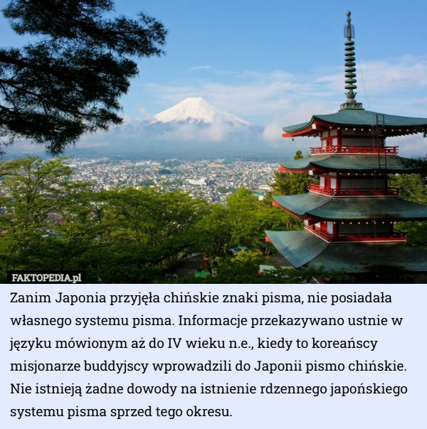 Zanim Japonia przyjęła chińskie znaki pisma, nie posiadała własnego systemu...