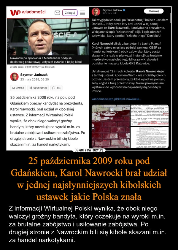 25 października 2009 roku pod Gdańskiem, Karol Nawrocki brał udział w jednej najsłynniejszych kibolskich ustawek jakie Polska znała