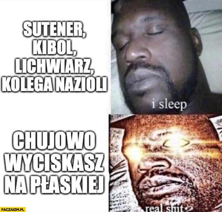 Sutener, kibol, lichwiarz, kolega nazioli I sleep vs słabo wyciskasz na płaskiej real shit reakcja