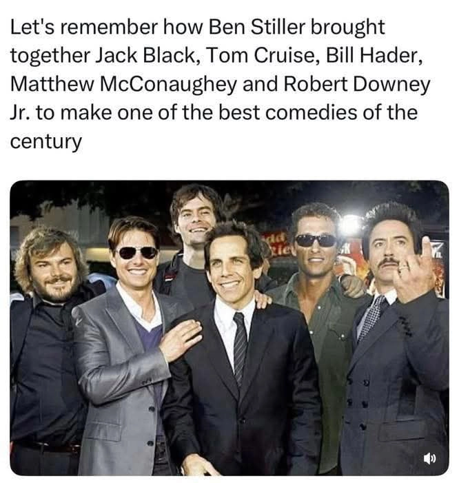 Tropic Thunder Has the best Tom Cruise , RDJ and Tobey Maguire role