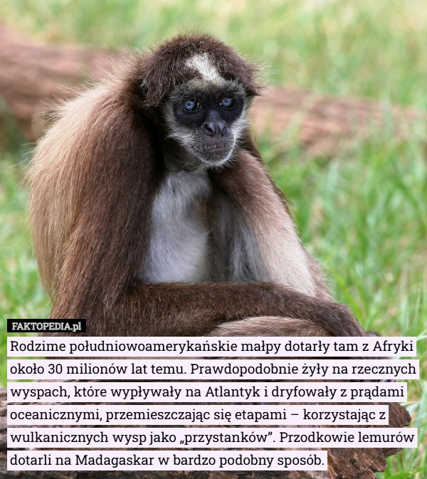 Rodzime południowoamerykańskie małpy dotarły tam z Afryki około 30 milionów...